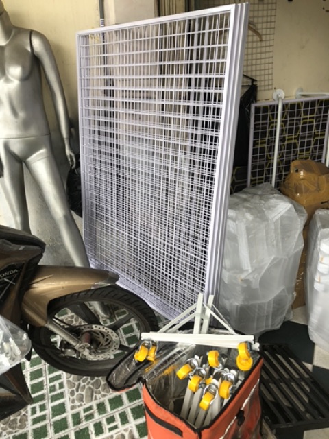 Khung lưới sơn tĩnh điện trắng, kích thước 0.8*1.5m, có bánh xe dễ di chuyển#luoikemoc #khungluoi #khungbanhxe #luoitreohang #moctreohang