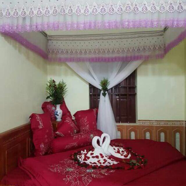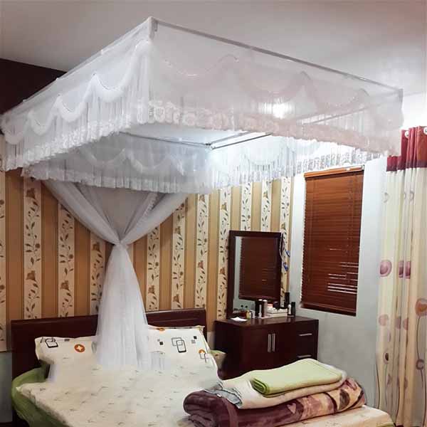 Khung ngang: Giường đặt ở vị trí góc nhà, vai giường đặt sát tường, khung mùng cố định ở chiều dài giường .
