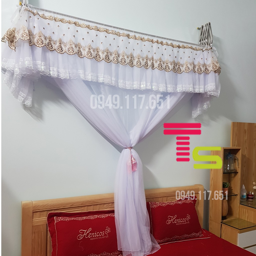+ Có 2 dạng: Khung ngang: Giường đặt ở vị trí góc nhà, vai giường đặt sát tường, khung mùng cố định ở chiều dài giường .