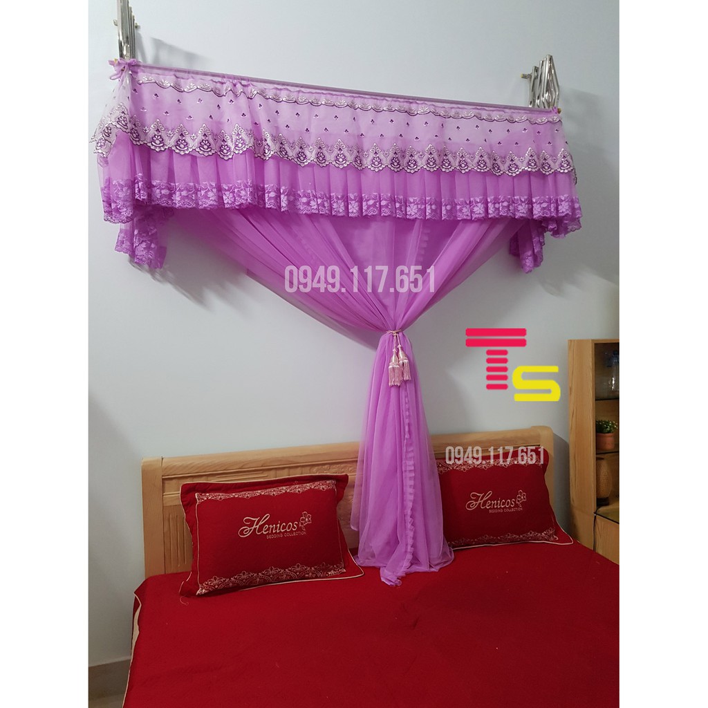 Khung dọc: Giường đặt ở vị trí giữa nhà , đầu giường sát tường, khung mùng cố định ở chiều rộng của giường .
