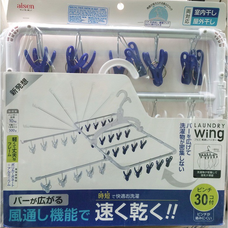 Nhà cửa & Đời sống > Sắp xếp nhà cửa > Mắc áo || Khung nhôm phơi quần áo 30 kẹp Aisen Nhật Bản LS001 hàng nhập khẩuCòn hàng