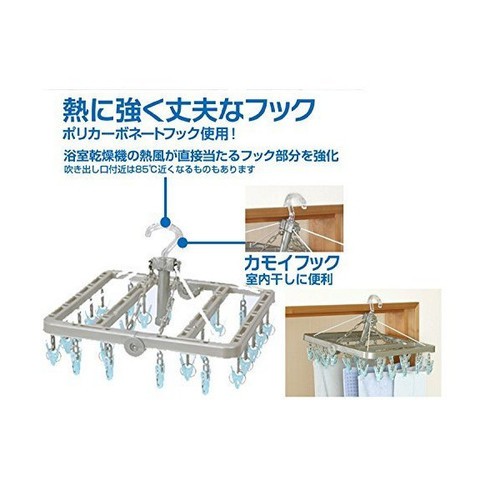 - Móc gồm 24 kẹp, phần móc treo có thể xoay 360 độ, giúp không hư hại khi gặp gió lớn.
