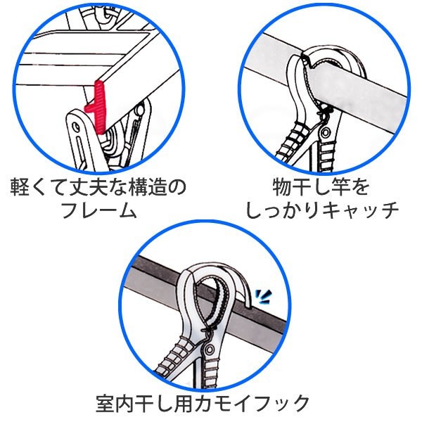 - Móc gồm 24 kẹp, phần móc treo có thể xoay 360 độ, giúp không hư hại khi gặp gió lớn.