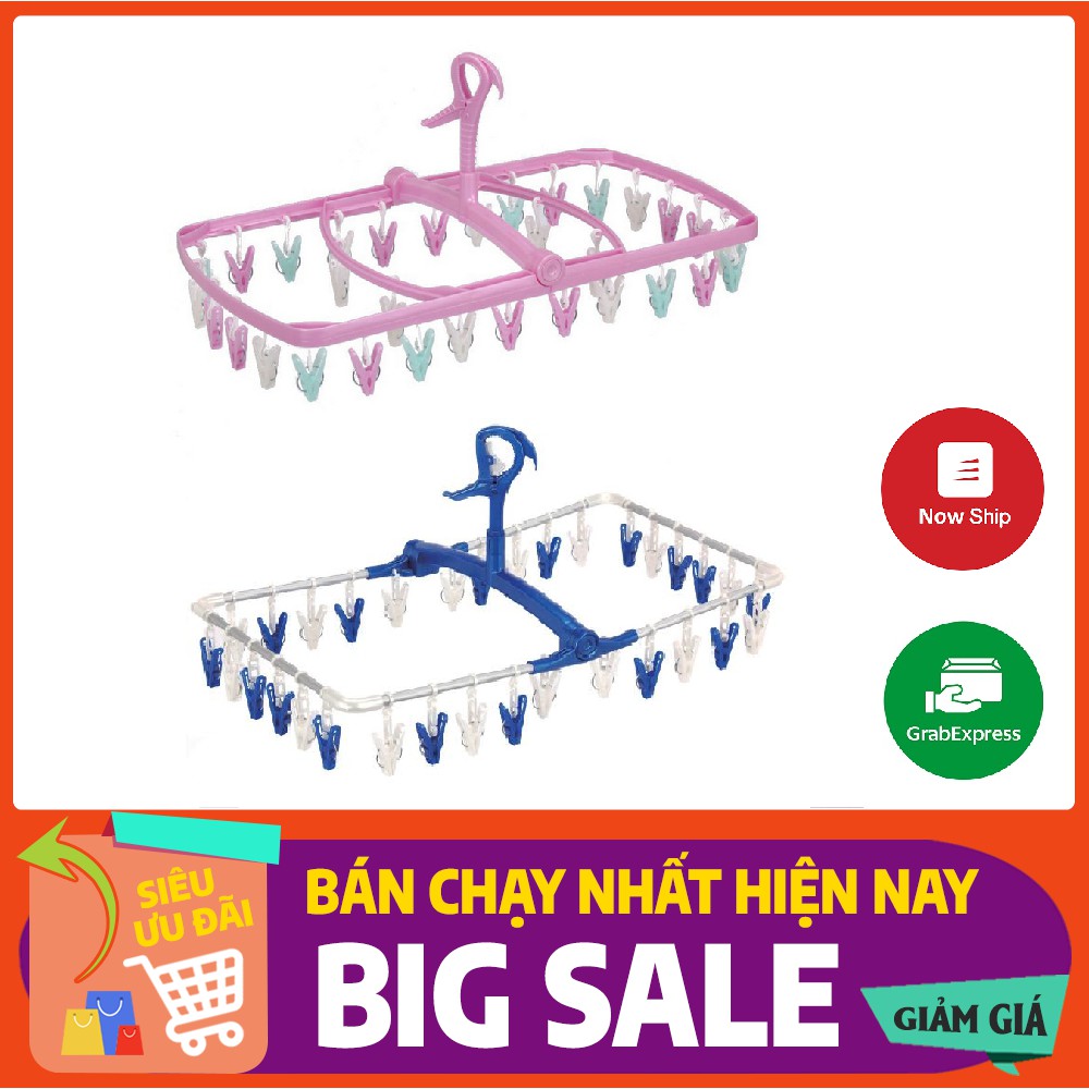 - Móc gồm 32 kẹp thích hợp phơi các đồ như khăn, tất, tã trẻ nhỏ, giúp tiết kiệm diện tích khi phơi đồ