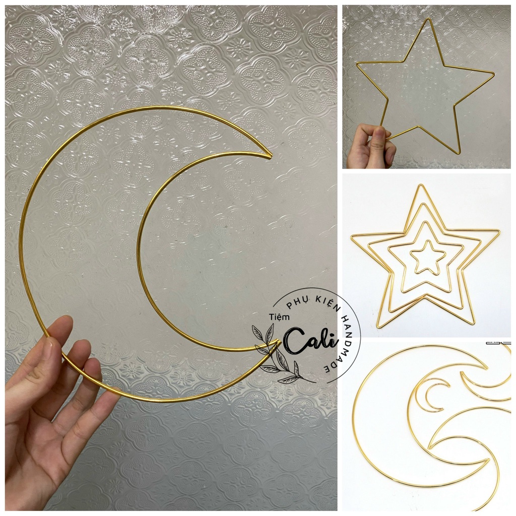 Khung sắt phủ ánh vàng họa tiết là Dreamcatcher, macrame, đồ trang trí handmade