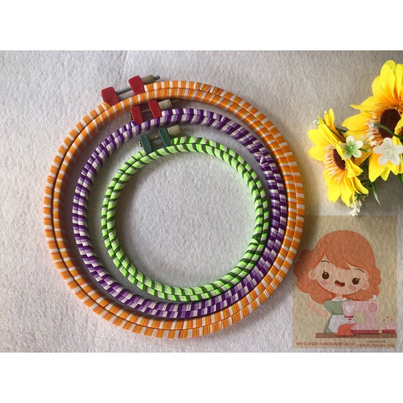 Giới thiệu Khung Thêu, Bàn Căng Thêu nhựa quấn len ĐK 12cm/15cm/20cm/23cm/27cm/30cm truyền thống không làm xước vải, thêu dễ dàng