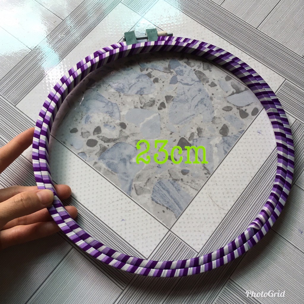 Khung thêu tròn là vật dụng không thể thiếu trong thêu tay truyền thống. Có nhiều chất liệu để làm nên một chiếc khung.Khung thêu VHX cung cấp được làm bằng nhựa dẻo, quấn chỉ xung quanh khung để tạo độ chắc khi căng vải mà không làm vải bị trùng (tuột), không làm nhàu vải.