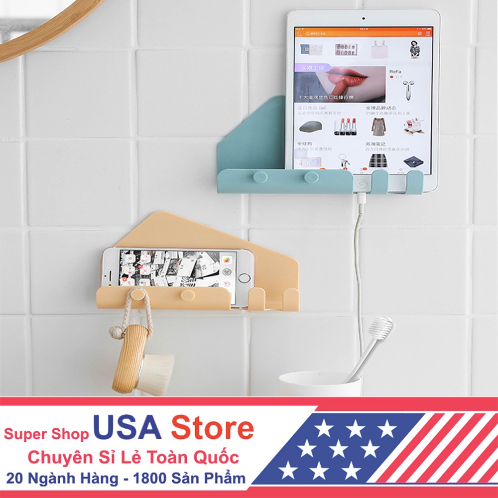 Khay Để Điện Thoại, Treo Đồ 4 Móc Cách Điệu V77 Decor (Hình Tứ Giác)