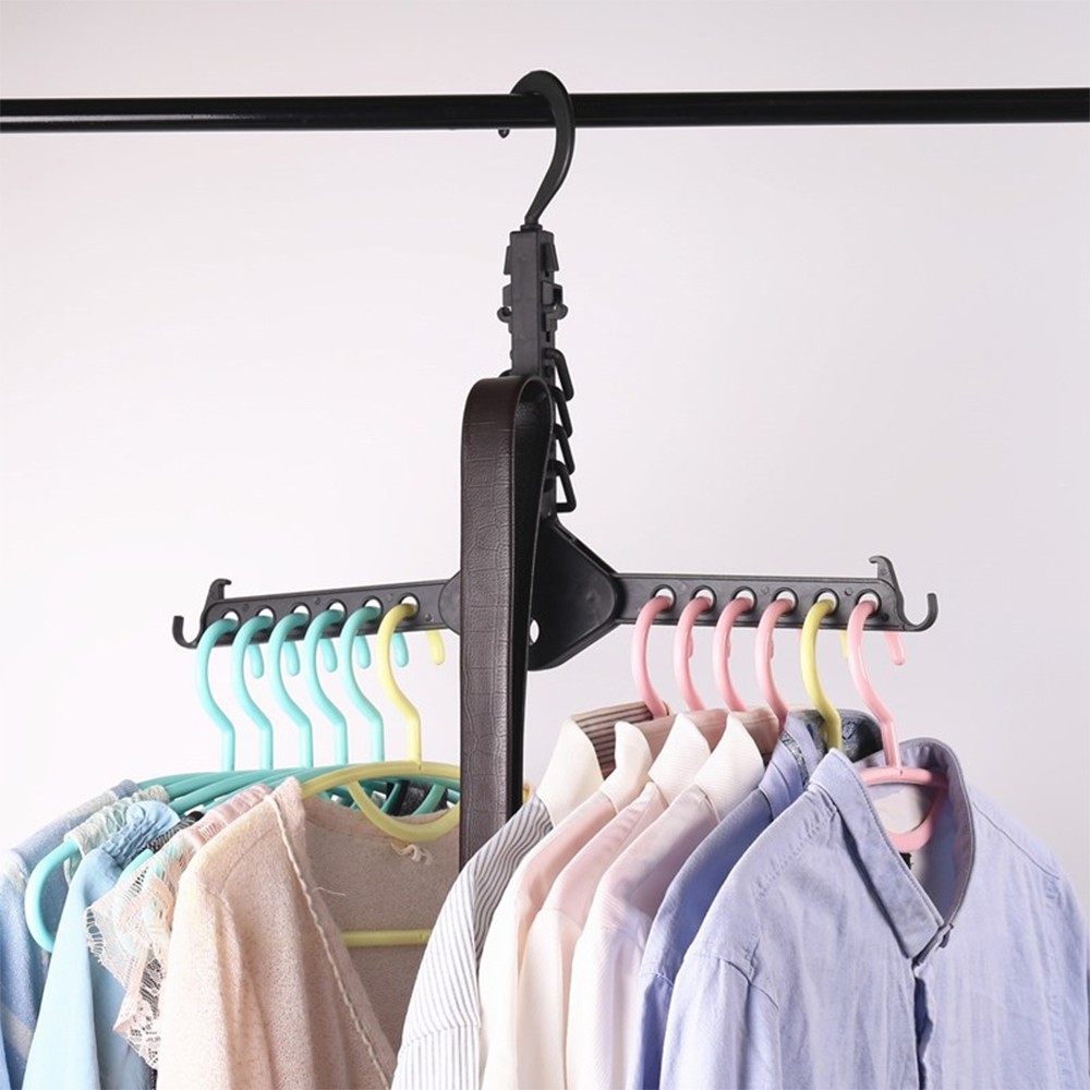 ♘Móc treo quần áo đa năng với thiết kế độc đáo mang lại hiệu quả sử dụng cao giúp bạn tận dụng tối đa không gian cần thiết để treo quần áo. Sử dụng sản phẩm, bạn sẽ không phải băn khoăn về quần áo bị nhàu hay sắp xếp lộn xộn nữa.