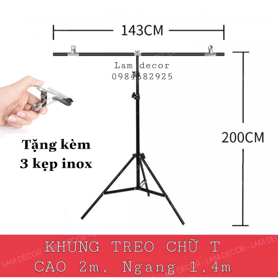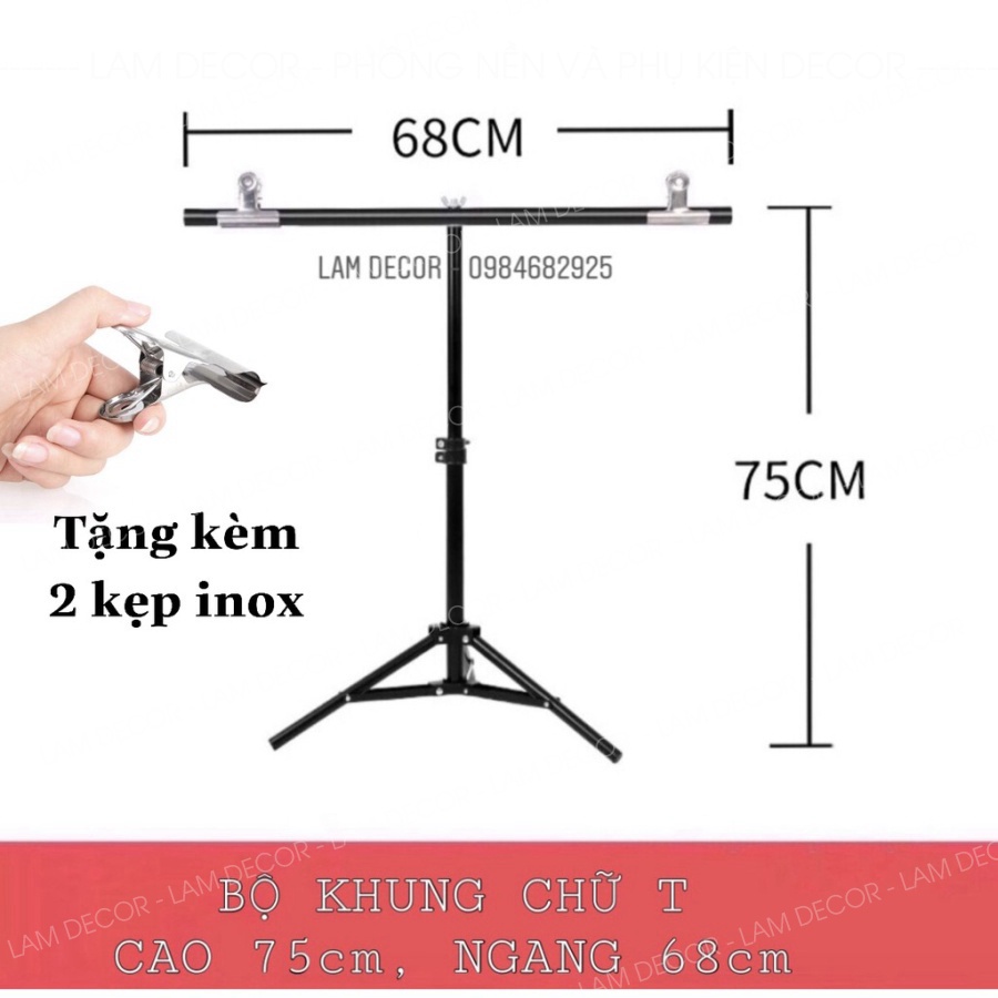 Lưu ý: Bộ sản phẩm sẽ được tặng kèm kẹp sắt để kẹp phông nền. Giá chưa bao gồm phông nền.