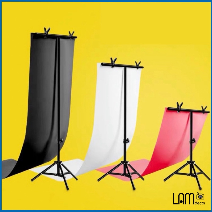 Bộ khung treo phông nền chụp ảnh hình chữ T thích hợp chụp sản phẩm nhỏ như giầy dép, mỹ phẩm, đồ ăn, make up, quay video... tại nhà.Đặc điểm sản phẩm: Sản phẩm có 2 size: