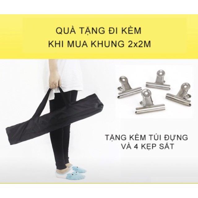 + Bộ sản phẩm tặng kèm túi đựng + 4 kẹp để kẹp phông nền lên khung.