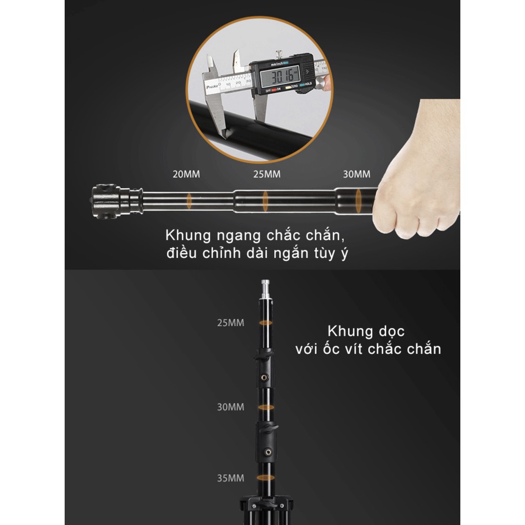 Bộ khung có thể chịu được trọng lượng tới 6kg nên có thể treo được những tấm phông nền chụp ảnh 3d, phông vải dày cỡ lớn, rất kiên cố khi chụp ảnh ngoài trời hay cả trong nhà.