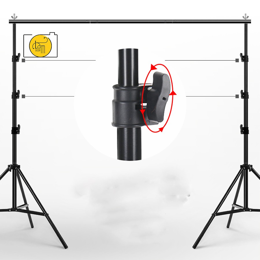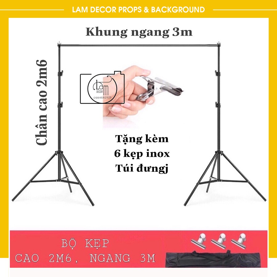 - Bộ sản phẩm tặng kèm túi đựng + 6 kẹp để kẹp phông nền lên khung.