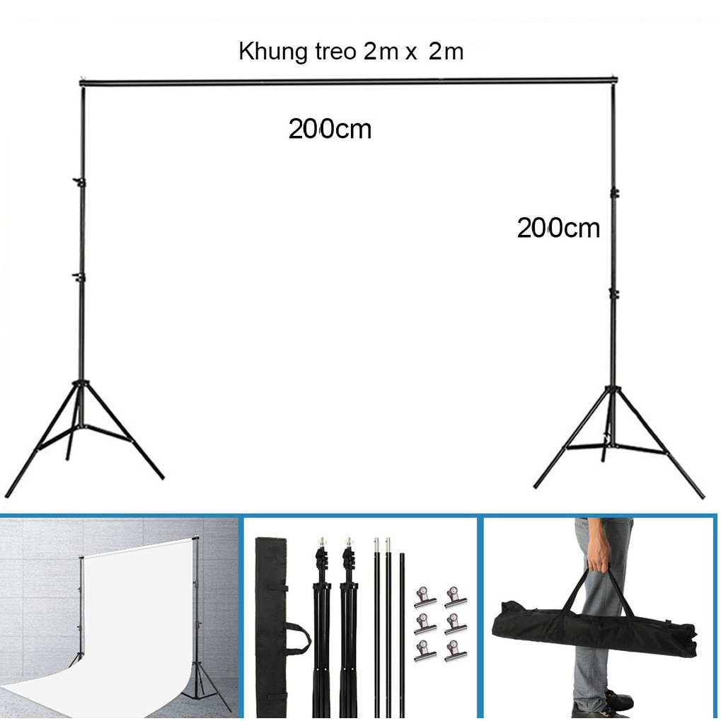 Bộ khung treo + Phông nền di động chữ U, KT 2x2m chụp ảnh, quay video, ảnh cưới, livestream,...(tặng kẹp, túi đựng )Chi tiết sản phẩm