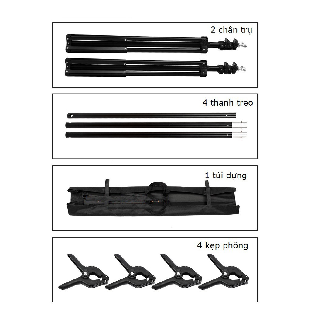 Bộ khung treo phông nền thích hợp cho các bạn chụp ảnh mẫu lookbook, livetream một cách chuyên nghiệp hơn.