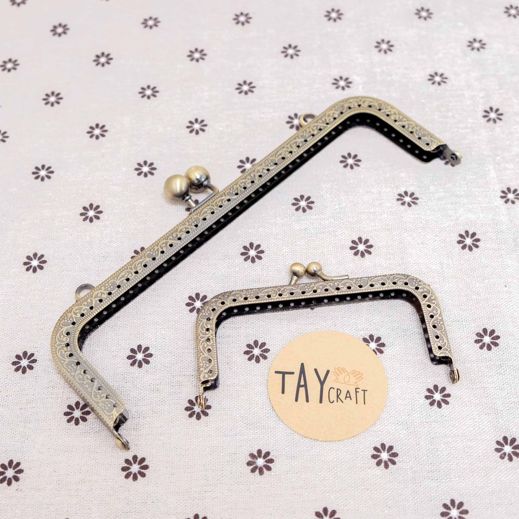 Khung túi sắt dành cho các bạn đam mê D.I.Y và may vá, có thể dùng để làm nhiều dáng túi xách khác nhau. Khung được làm bằng sắt không rỉ, khắc hoa văn chìm tạo nên nét cổ điển và sang trọng cho chiếc túi tự làm của bạn.- Chất liệu: kim loại mạ màu đồng giả cổ không rỉ