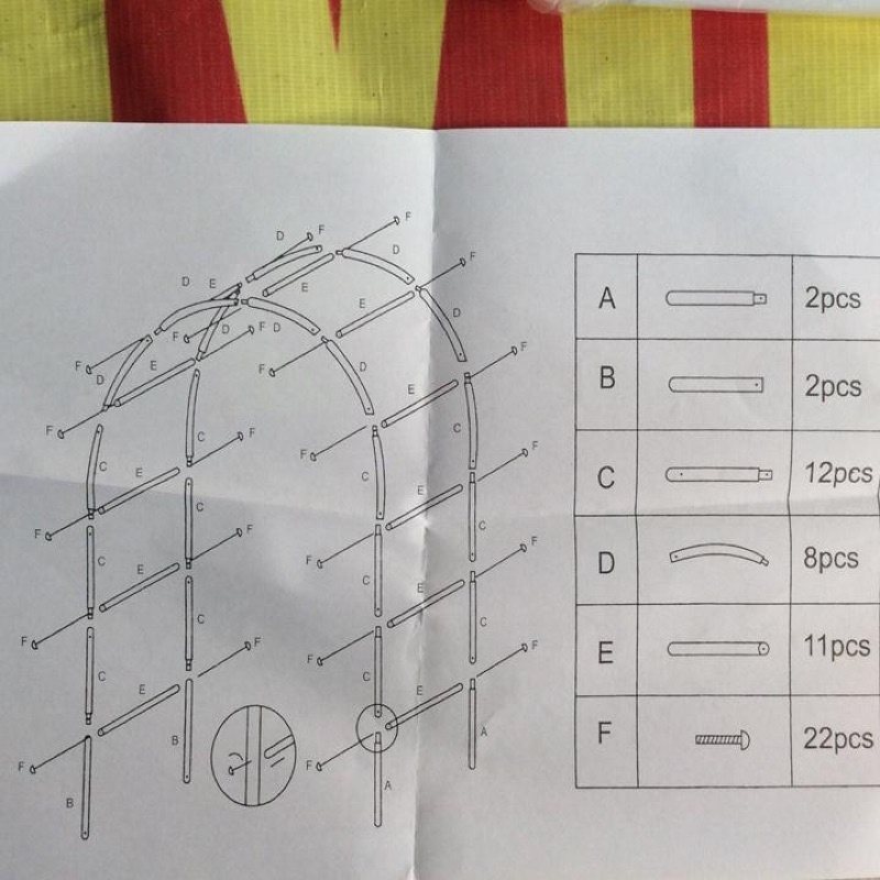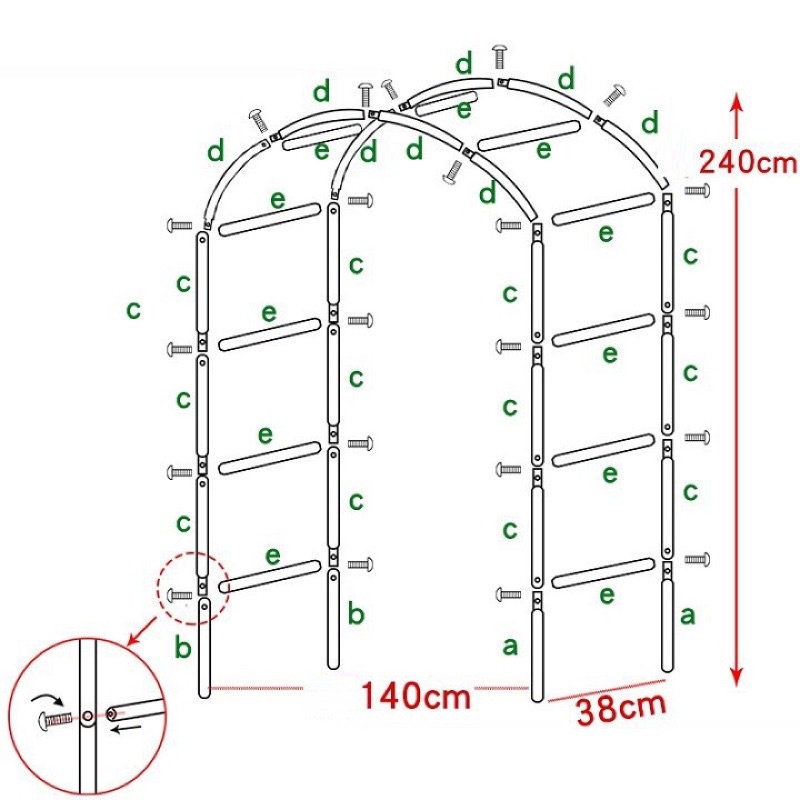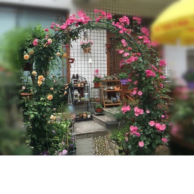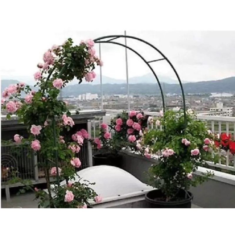 Thông số: khung vòm hoa hồng cao 2,4m rộng 1,4m ngang 36cm HOẶC có thể lắp ghép thành khung vòm cao 2m rộng 1m85.Khung vòm cho hoa hồng leo, cây trang trí Khung đỡ hoa hồng leo dạng vòm là bộ khung lắp ráp được làm bằng sắt, dùng để làm khung đỡ cho hoa hồng hoặc cây hoa trang trí dạng leo bám trụ. Khung vòm làm bằng ống sắt, sơn tĩnh điện, lắp ghép bằng ốc vít, khi không dùng có thể tháo rời, xếp lại gọn gàng. Do cấu trúc làm bằng thép ống nên trọng lượng giàn rất nhẹ (khoảng 2kg). Được sơn tĩnh điện chống gỉ nên có độ bền cao, chống lại sự ăn mòn của mưa và thời tiết. Khung vòm có kết cấu trang nhã đem lại vẻ đẹp cho vườn cây của bạn.