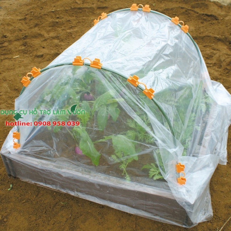 Khung vòm trồng rau có kích thước Cao 70 * Rộng 90 * Dài 200cm- Khung vòm bao gồm: 5 khung vòm 70*90cm , 1 lưới chắn côn trùng 2.0*2.0m , 8 kẹp giữ màng