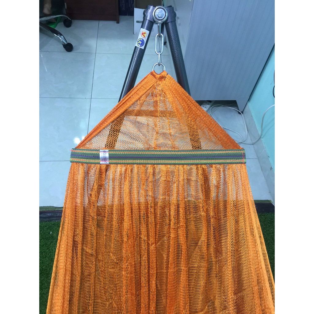 Võng lưới: dệt từ sợi 100% polyester, đã căng kim ít dãn, dày, khổ rộng 1.2m, cán thép dài 50 cm (Màu ngẫu nhiên: ngọc, xám,cam...)