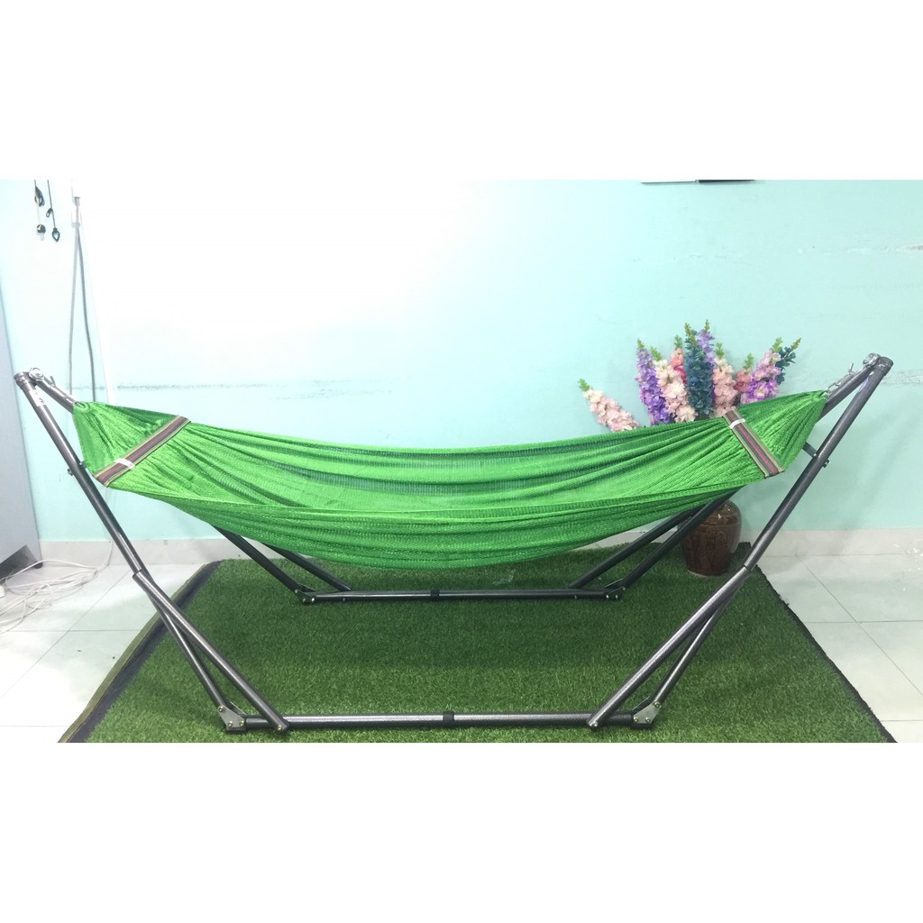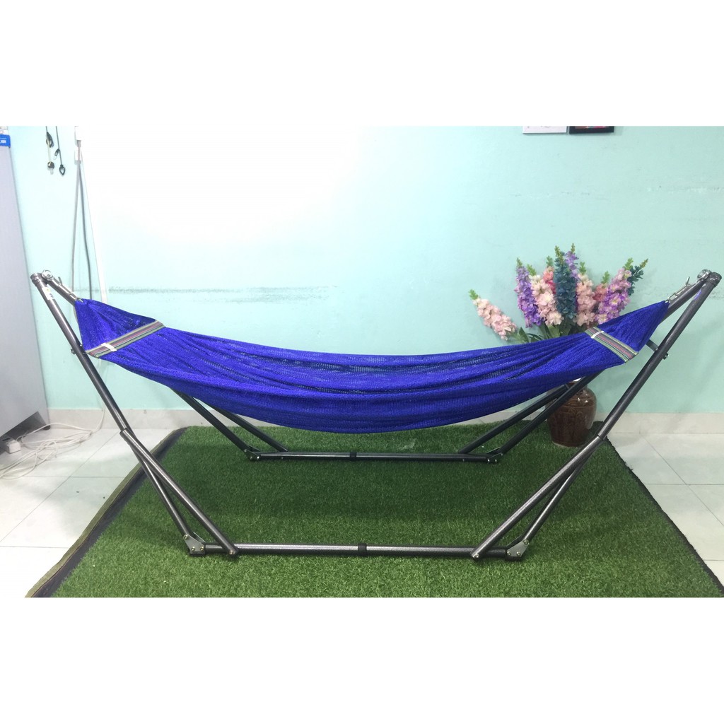 - Khung võng xếp bằng ống thép: sơn tĩnh điện, đường kính 32.0mm, chiều dày 0.7mm (màu sần, bạc), 4 thanh chống cong:điều chỉnh độ dài & độ cao của khung võng.-Kích thước sử dụng: trung bình 210 x 74 x 79 cm