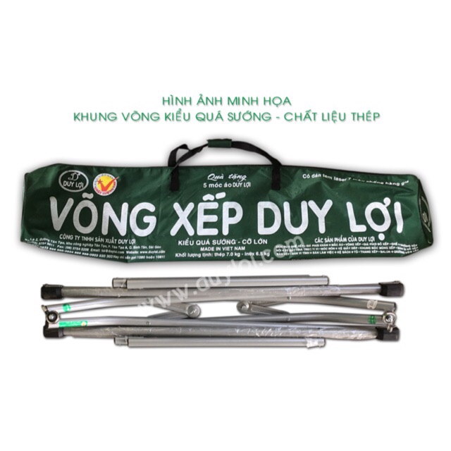 💯💯 Võng xếp Duy Lợi sơn tĩnh điện được thiết kế thông minh, kiểu dáng sang trọng, đặc biệt đã được bảo hộ độc quyền sáng chế trên toàn cầu+ Khung võng được làm từ chất liệu thép cao cấp được nhập từ Đài Loan và được bao phủ bởi lớp sơn tĩnh điện chống gỉ, màu sắc sang trọng, bền đẹp