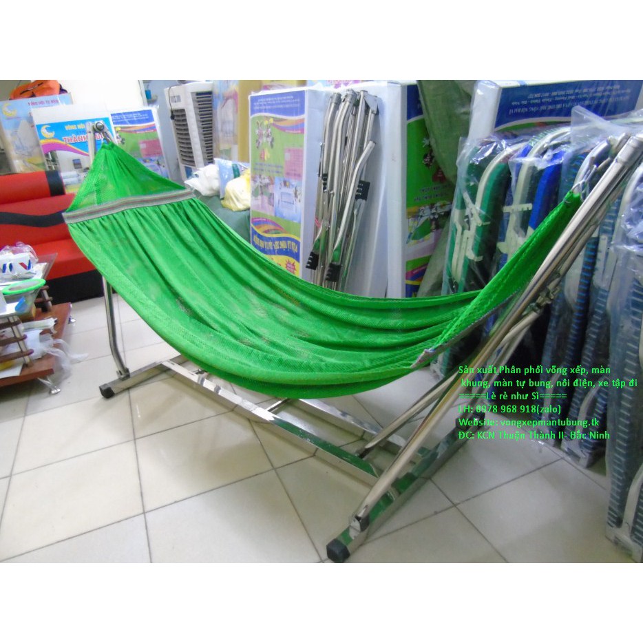 Khung võng xếp inox vuông khung và lướiKhung võng xếp inox vuông là loại khung võng đế vuông phi 40 chất liệu inox 100%, sáng bóng không rỉ sét. Thiết kế đế vuông vững chắc không bị rung nảy khi đung đưa võng. Hàng chính hãng bảo hành 12 tháng.