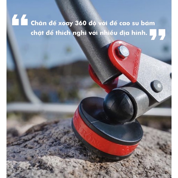 Chân đế Khung Võng Xếp Ngọc Hoàng được làm bằng APS cacbon,sợi thủy tinh có tính chịu lực,độ bám rất tốt trong mọi môi trường nóng lạnh.chân đế có thể dùng tay điều chỉnh độ nghiêng 360°nên để được trên mọi địa hình .Độ kết dính của chân đế như đồ hít kiếng bám xuống mặt sàn,khi nằm đong đưa võng không bị di chuyển khung như nhiều sản phẩm cùng loại trên thị trường hiện nay.