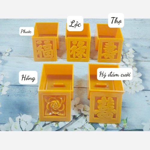 [ - 0] Khuôn Nhựa Ấn Xôi Ấn Cơm Hình Vuông Phúc Lộc Thọ Sen Hồng Hỷ 6 Mẫu Ấn 8*5.5 CmKHUÔN VINH TRUONG MAU CAM