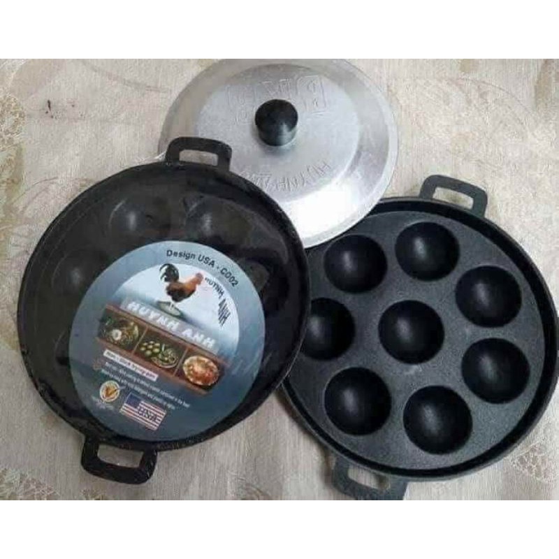 - Khuôn làm bánh căn được làm bằng gang, chống dính, giúp bạn dễ dàng đổ bột và lấy bánh ra khỏi khuôn