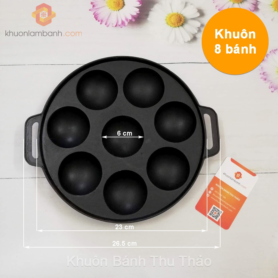 Khuôn bánh khọt chống dính 8 lỗ 6cm (nắp inox)
