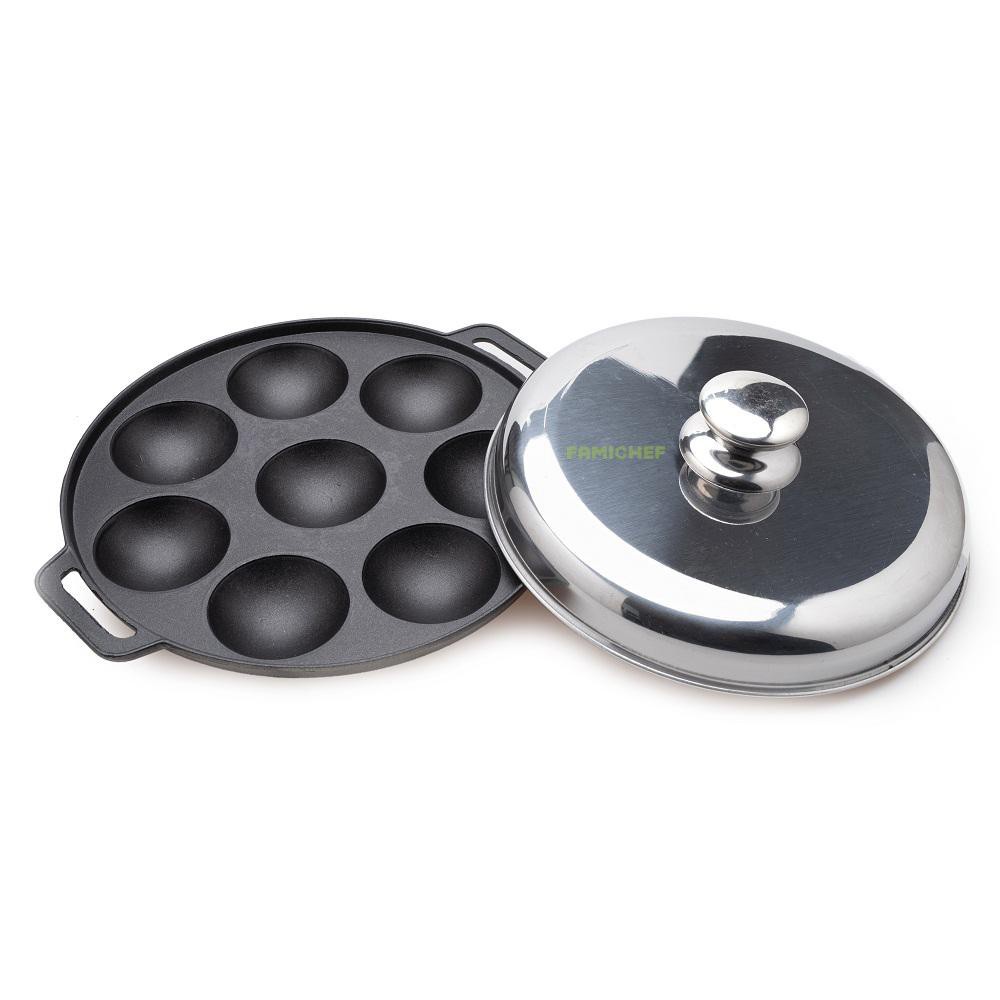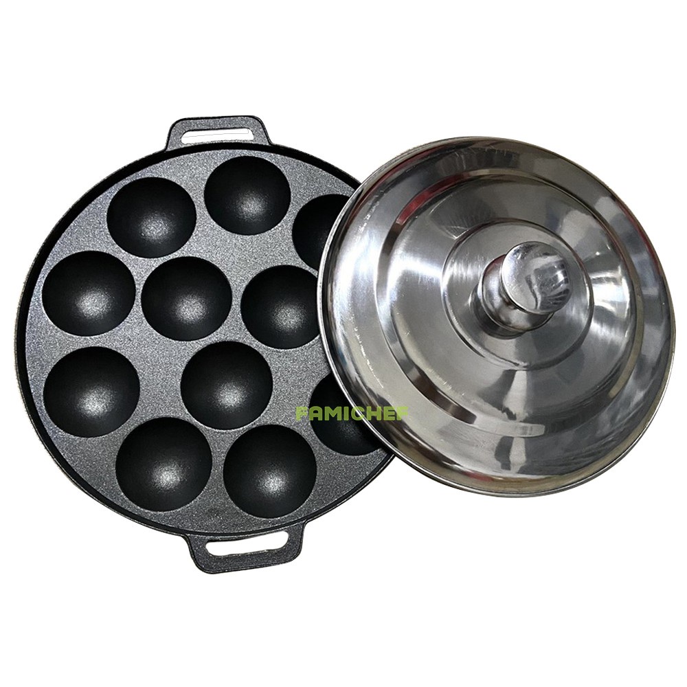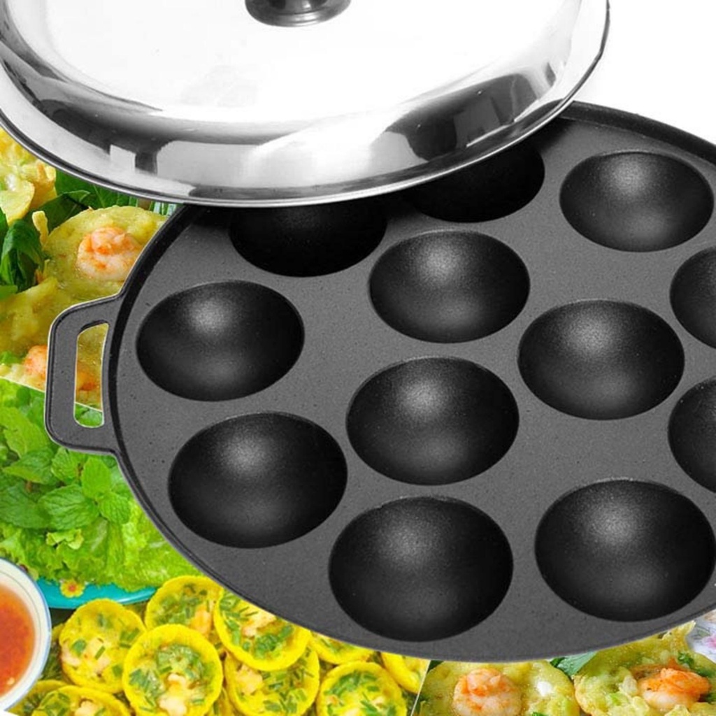 Nhà cửa & Đời sống > Dụng cụ nhà bếp > Chảo || Khuôn Bánh Khọt Gang Chống Dính Loại Dày Cao Cấp Nắp Inox ( 8 - 10 - 12 lỗ .?)Còn hàng