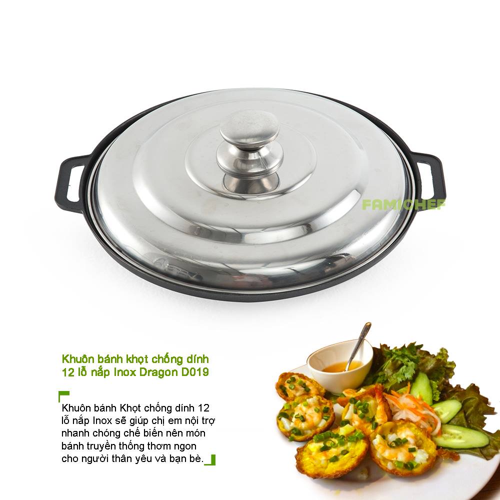 Giới thiệu Khuôn Bánh Khọt Gang Chống Dính Loại Dày Cao Cấp Nắp Inox ( 8 - 10 - 12 lỗ .?)