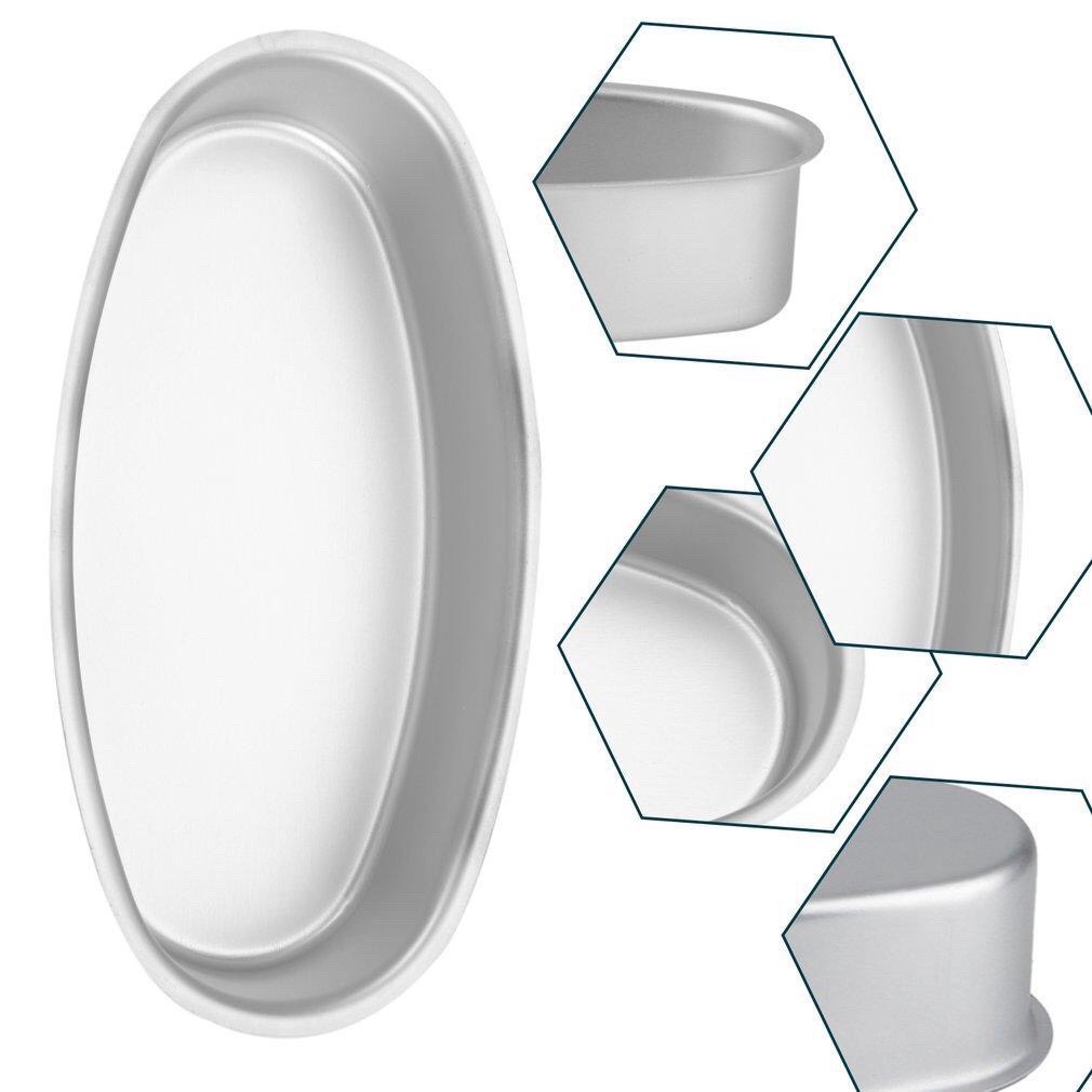 Khuôn nhôm đúc cao cấp hình oval được làm bằng chất liệu nhôm cứng, sáng bóng, bền đẹp. Thành khuôn cao, chắn chắn cho bánh chuẩn form, đẹp mắt. Hình dáng oval giúp bạn tạo ra những chiếc bánh hình dáng mới mẻ, đẹp mắt.