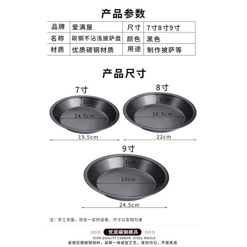 Giới thiệu Khuôn bánh pizza chống dính size 7-8-9 inch (miệng 20-22-24.5cm)