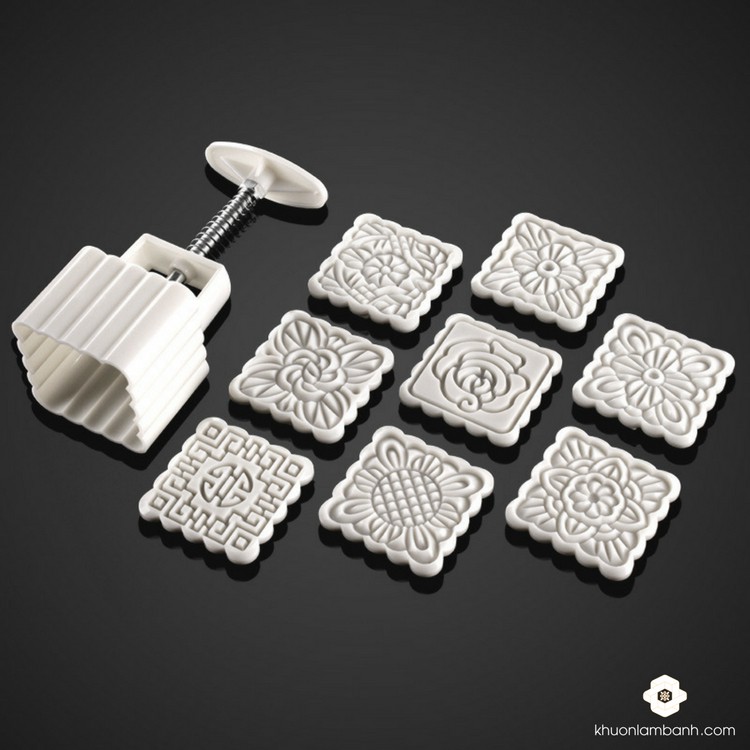 - Bao gồm: 1 dụng cụ nhấn + 8 mặt khuôn vuông