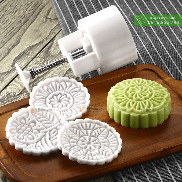 Giới thiệu Khuôn bánh trung thu 150g 3 mặt tròn hoa văn họa tiết truyền thống