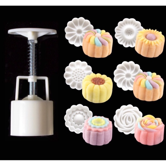 Cách sử dụng: Bạn chỉ cần cho bột vào khuôn rồi lấy tay ép lò xo xuống là ta đã được những chiếc bánh trung thu cực kì xinh xắn và đẹp mắt. Chính phần lò xo này giúp bánh vừa vặn mà lại khiến cho người làm không tốn nhiều công sức. Khi bạn muốn đổi hoa văn, chỉ việc thay mặt là ta đã có những chiếc bánh họa tiết khác nhau.