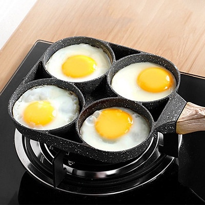 Giới thiệu Khuôn Chảo Chiên Rán Trứng Làm Bánh 4 Ngăn 4 Lỗ Chống Dính - Chống Dính Tay Cầm Gỗ 4 ngăn nấu được cả bếp từ và bếp gas