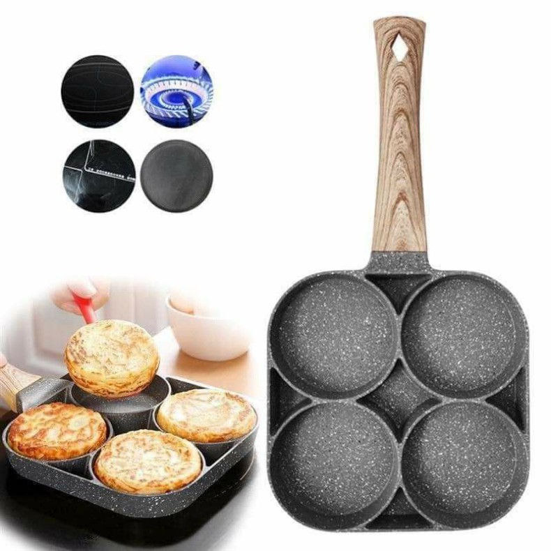 Chảo được làm bằng hợp kim nhôm chất lượng cao, không dính và dễ làm sạch.Thiết kế 4 ngăn cho phép bạn chiên 4 quả trứng cùng lúc cho cả gia đình.