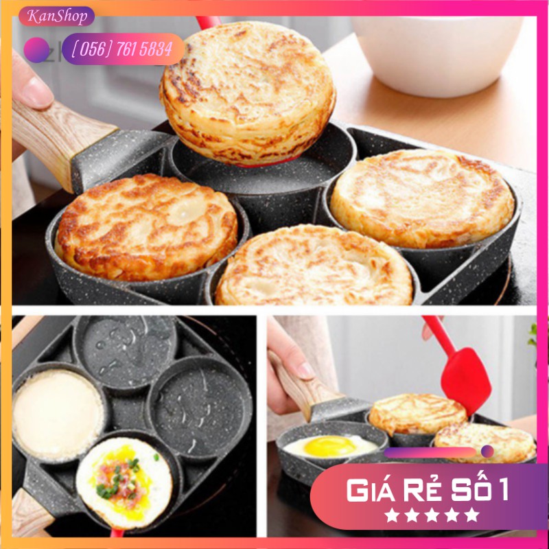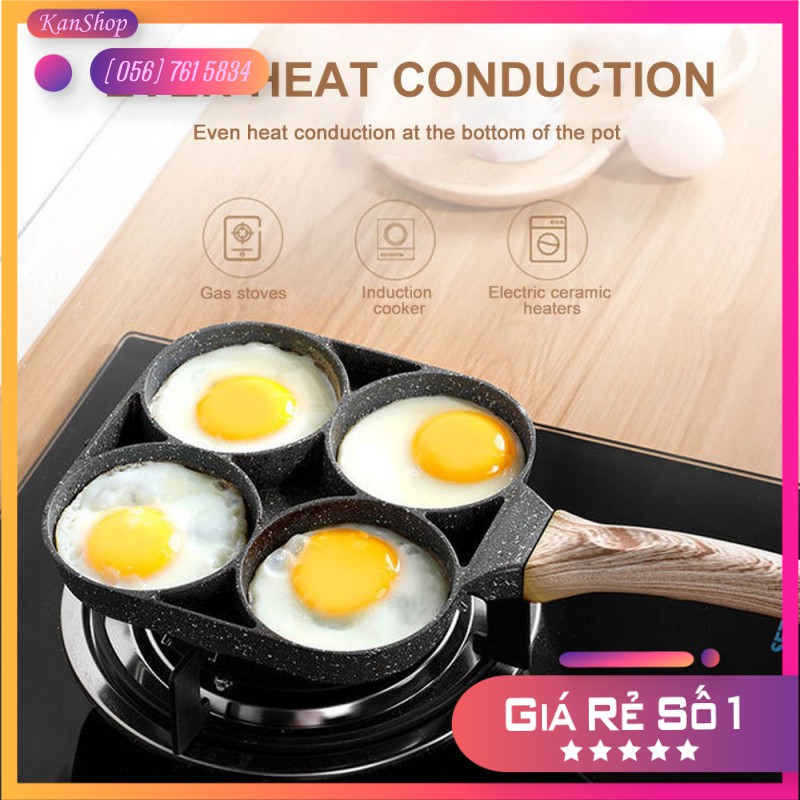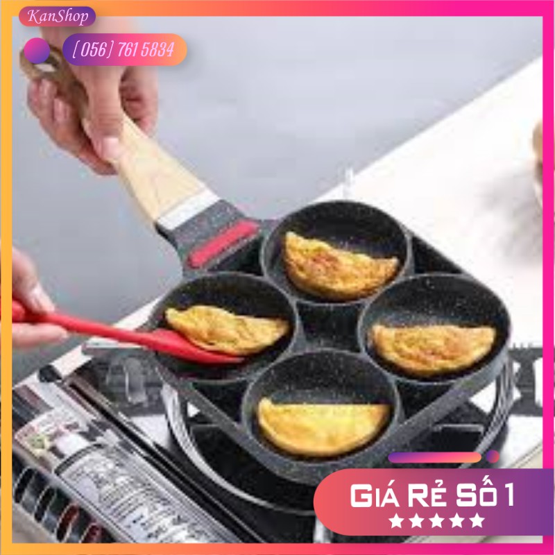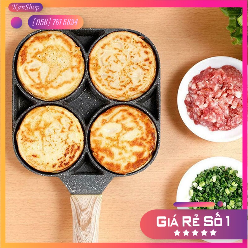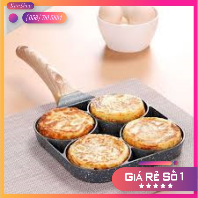 Nhà cửa & Đời sống > Dụng cụ nhà bếp > Chảo || Khuôn Chảo Chiên Rán Trứng Làm Bánh 4 Ngăn 4 Lỗ Chống Dính- Chống Dính Tay Cầm GỗCòn hàng