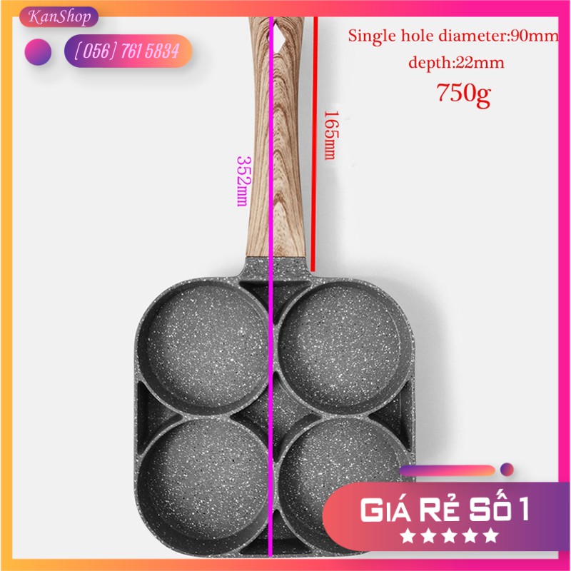 Giới thiệu Khuôn Chảo Chiên Rán Trứng Làm Bánh 4 Ngăn 4 Lỗ Chống Dính- Chống Dính Tay Cầm Gỗ
