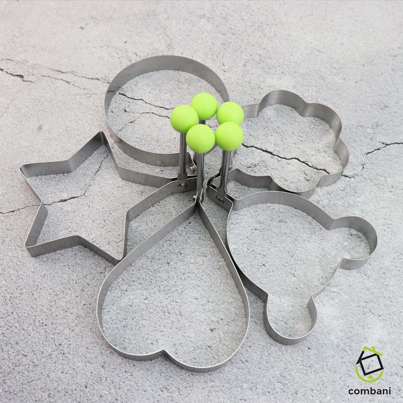 Bộ khuôn tạo hình với chất liệu inox bền, sạch, và an toàn tuyệt đối cho thực phẩm. Dùng xong bạn có thể vệ sinh rất dễ dàng. Khuôn chiên trứng có thiết kế tiện dụng với nhiều hình dạng xinh xắn như ngôi sao, trái tim, hình tròn, hoa... giúp món bánh và trứng chiên của bạn thật bắt mắt và hấp dẫn nhất