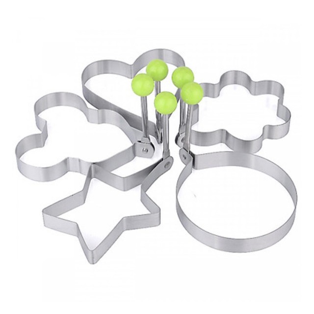 Bộ khuôn tạo hình với chất liệu inox bền, sạch, và an toàn tuyệt đối cho thực phẩm. Dùng xong bạn có thể vệ sinh rất dễ dàng. Khuôn chiên trứng có thiết kế tiện dụng với nhiều hình dạng xinh xắn như ngôi sao, trái tim, hình tròn, hoa... giúp món bánh và trứng chiên của bạn thật bắt mắt và hấp dẫn nhất