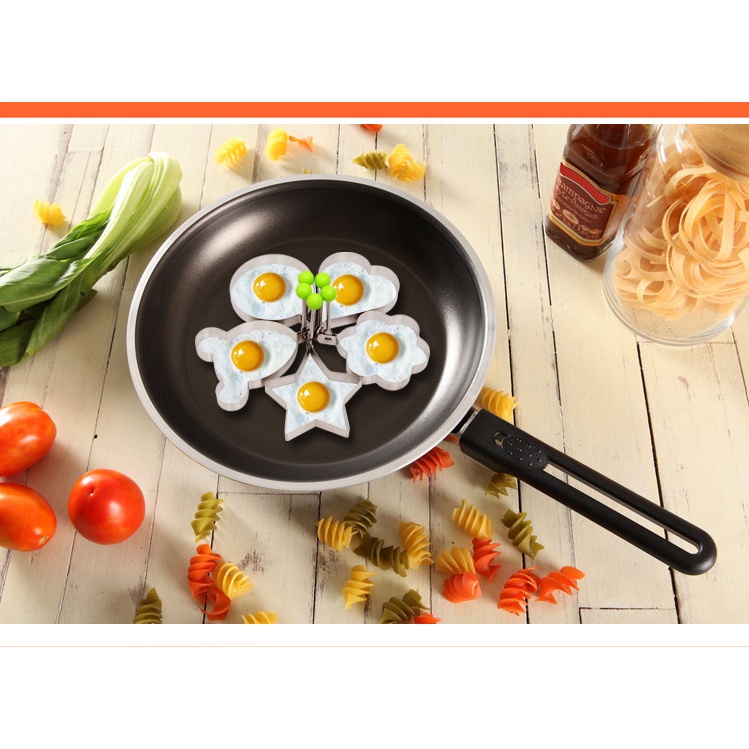 Thật tiện lợi khi chiếc chảo của bạn chỉ cần bật nóng, cho dầu dán rồi cho khuôn, đổ trứng hay bột làm bánh vào đó là bạn đã có những món ăn thật ngon. Cùng lúc có thể chiên trứng hay bánh với 5 hình cùng lúc thật là hấp dẫn và với hình ngộ nghĩnh như vậy thì bé sẽ thích thú và ăn ngon miệng. Bộ khuôn làm bằng chất liệu inox rất bền, sạch, và an toàn tuyệt đối cho thực phẩm, dễ dàng vệ sinh.
