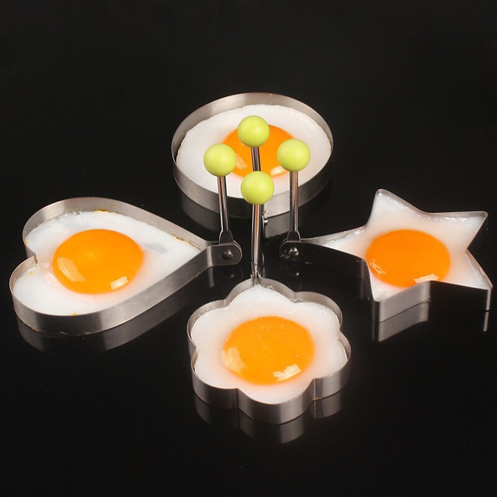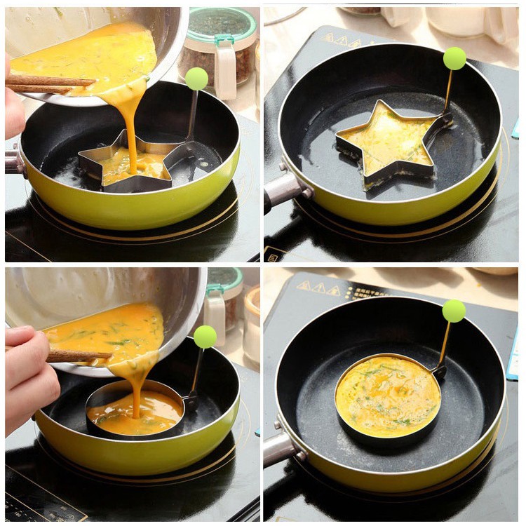 KHUÔN CHIÊN TRỨNG TẠO BẰNG INOX- Khuôn chiên trứng tạo hình giúp món trứng ốp của bạn sẽ tuyệt đẹp. Có hình trái tim, hình tròn, hình bông hoa, hình ngôi sao. Sử dụng rất đơn giản, bạn chỉ cần cho khuôn lên chảo, cho dầu vào, rồi đập trứng vô là xong.