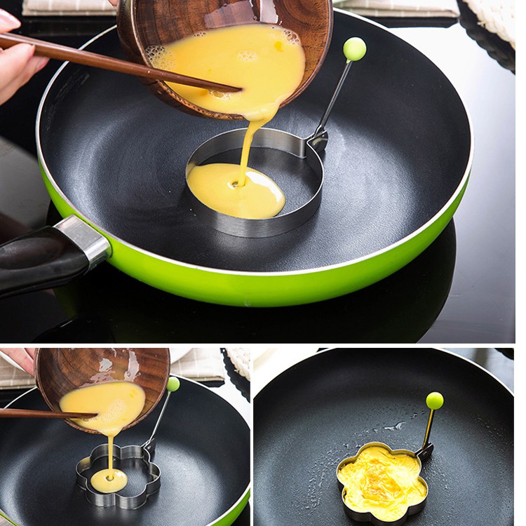 - Thay vì chiên trứng với hình tròn không đều như trước đây thì bạn sẽ thấy hứng thú và cảm giác món ăn ngon miệng hơn nhiều bằng các thiết kế trái tim, hình tròn hay bông hoa, hình ngôi sao,...