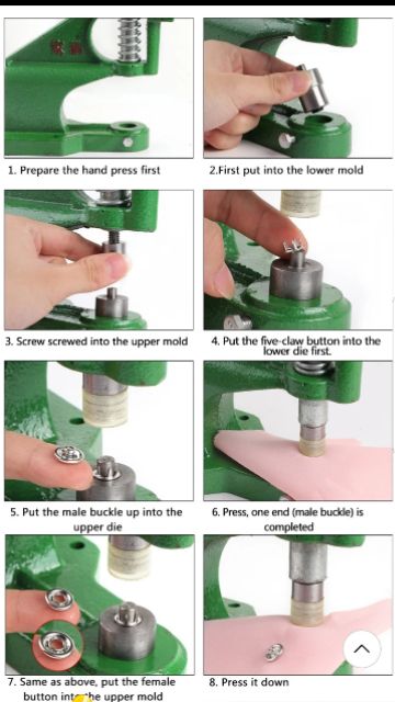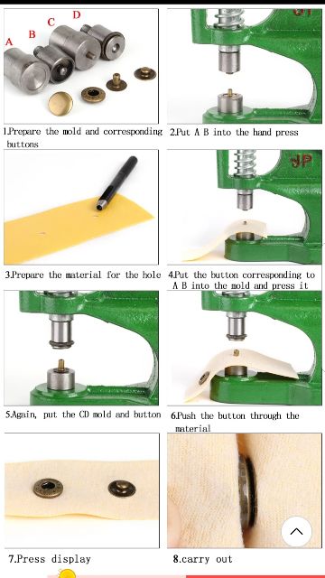 1. Sử dụng kèm với máy dập cúc và cúc vành cỡ 9.5mm để làm cúc bấm áo sơ mi, quần áo, váy trẻ em, bộ body của trẻBộ sản phẩm gồm 2 chiếc: cối trên và cối dưới