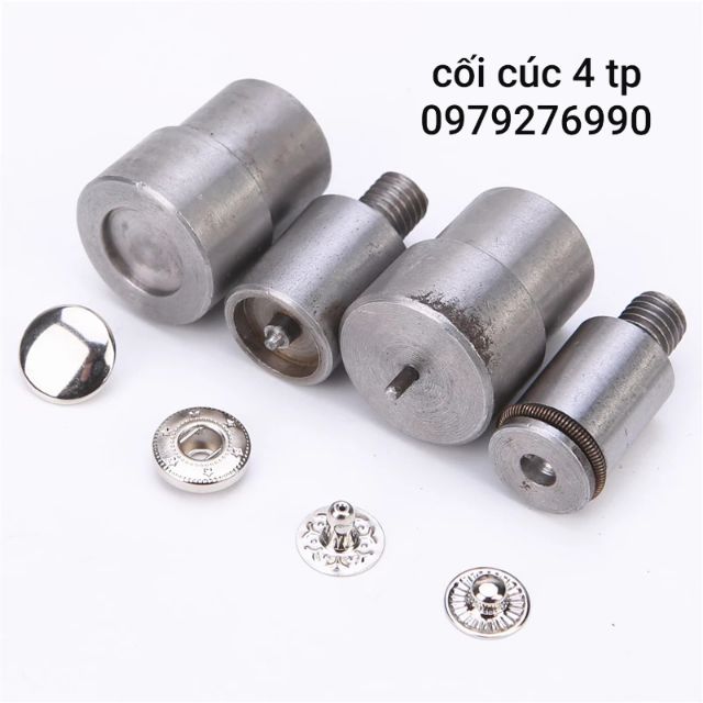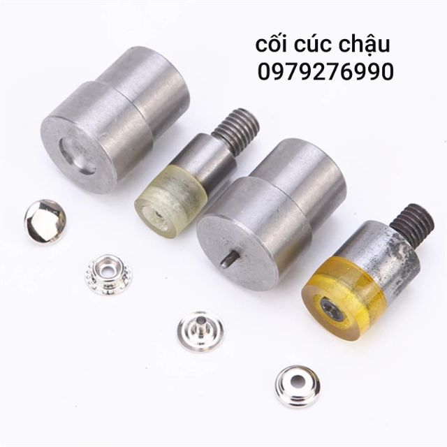 3.4. Bộ cối đóng cúc dùng kèm với máy dập cúc để đóng cúc bấm 4 thành phần rất đẹp và chắc chắn: có 3sz là 10mm,12mm và 15mm