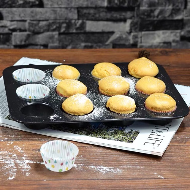 Khuôn cupcake 12 ô to / khuôn cupcakeMàu sắc: Đen - Vàng